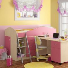 Кровать-чердак "Дюймовочка-5.2"  Дуб молочный/Розовый | фото