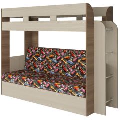 Кровать 2-х ярусная с диваном Карамель 75 (Машинки) Ясень шимо светлый/темный