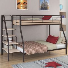 Конструкция кровати предусматривает два спальных места размером: 90*190 см - верхнее, 120*190 см - нижнее. Верхнее спальное место защищено бортиками. Прочную лестницу с широкими ступенями можно установить справа или слева.