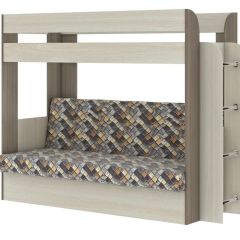 Кровать 2-х ярусная с диваном Карамель 75 (Ромбы) Ясень шимо светлый/темный