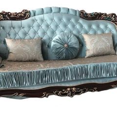 Красивое название для красивого дивана. Акцент сделан на богатый резной декор каркаса молочного цвета. Его цветочные мотивы изящно сочетаются с рисунком сидения. Диван раскладной трехместный Аделина крем. Два варианта исполнения ткани: бежевое золото или бирюза.
