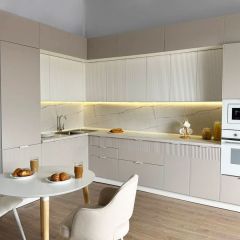 Дополнительно можно комплектовать: столешницей, стеновой панелью, объемным плинтусом, стыковочными и торцевыми планками и цельным пластиковым цоколем на весь кухонный гарнитур.