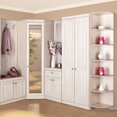 Серия включает все необходимые предметы мебели для прихожей: 1-, 2- дверные и угловой шкафы для одежды, тумба с панелью с крючками и тумба с зеркалом.